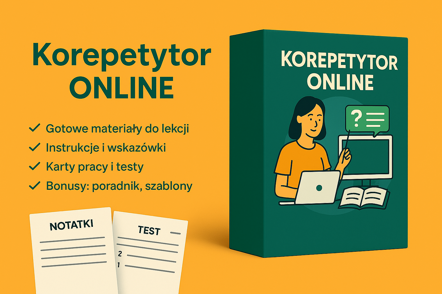 Gotowy zestaw do rozpoczęcia działalności jako korepetytor online. Szablony ogłoszeń, materiały do lekcji, organizery i poradniki – wszystko, czego potrzebujesz, by od razu zacząć.